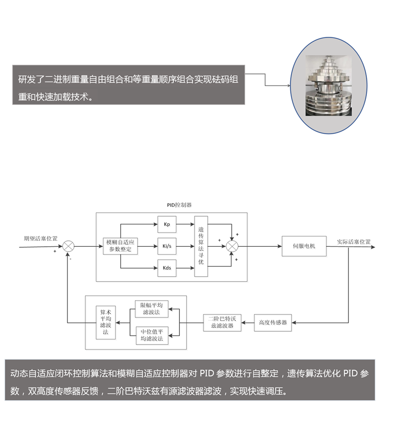 ①整數(shù)壓力點砝碼質量全自動加載功能