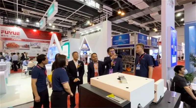 原計(jì)量司副司長(zhǎng)劉新民與中國(guó)計(jì)量協(xié)會(huì)理事長(zhǎng)吳方迪來(lái)創(chuàng)威展位指導(dǎo)參觀(guān)