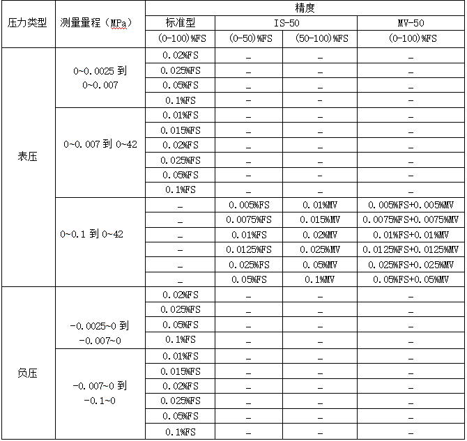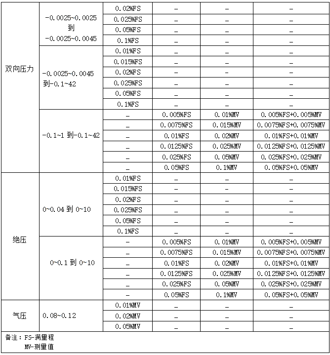 (6) 測量壓力類型有表壓、絕壓及雙向壓力