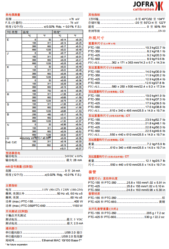 (3)寬溫度范圍: PTC-155: -25 至 155°C (-22 至 311°F) ;PTC-350: 33 至 350°C (91 至 662°F) ;PTC-425: 33 至 425°C (91 至 797°F) PTC-660: 33 至 660°C (91 至 1220°F);